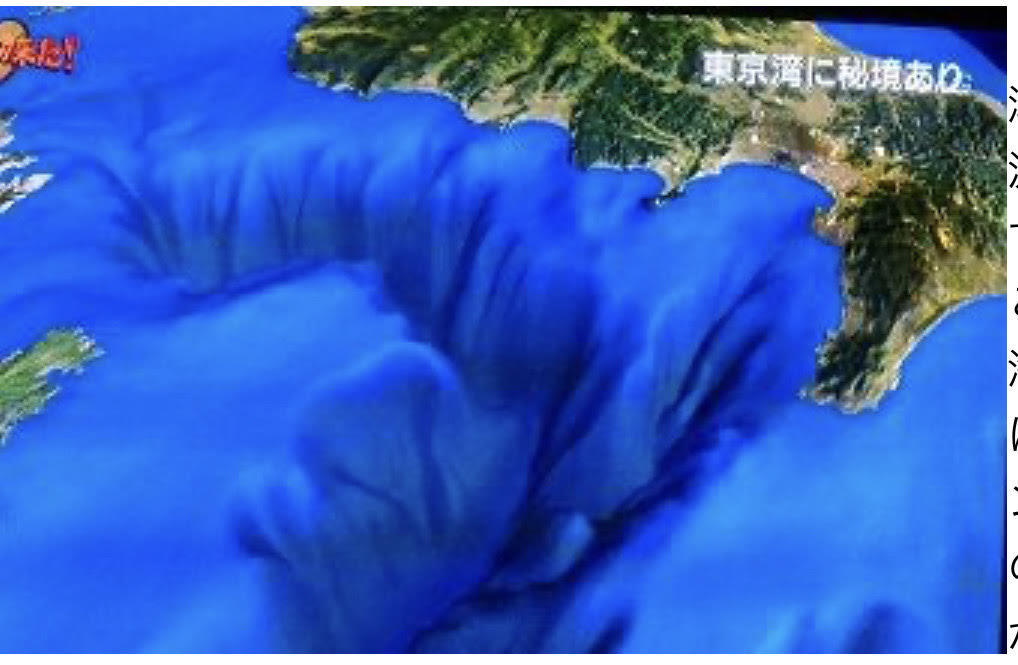 その先の湾口は一気に深くなり、水深600mの東京海底谷が横たわります。